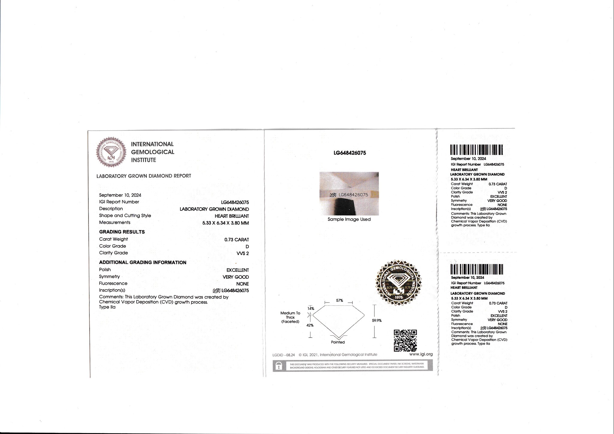 Лабораторно-выращенный бриллиант огранки "Сердце" D/VVS2 массой 0.73 ct