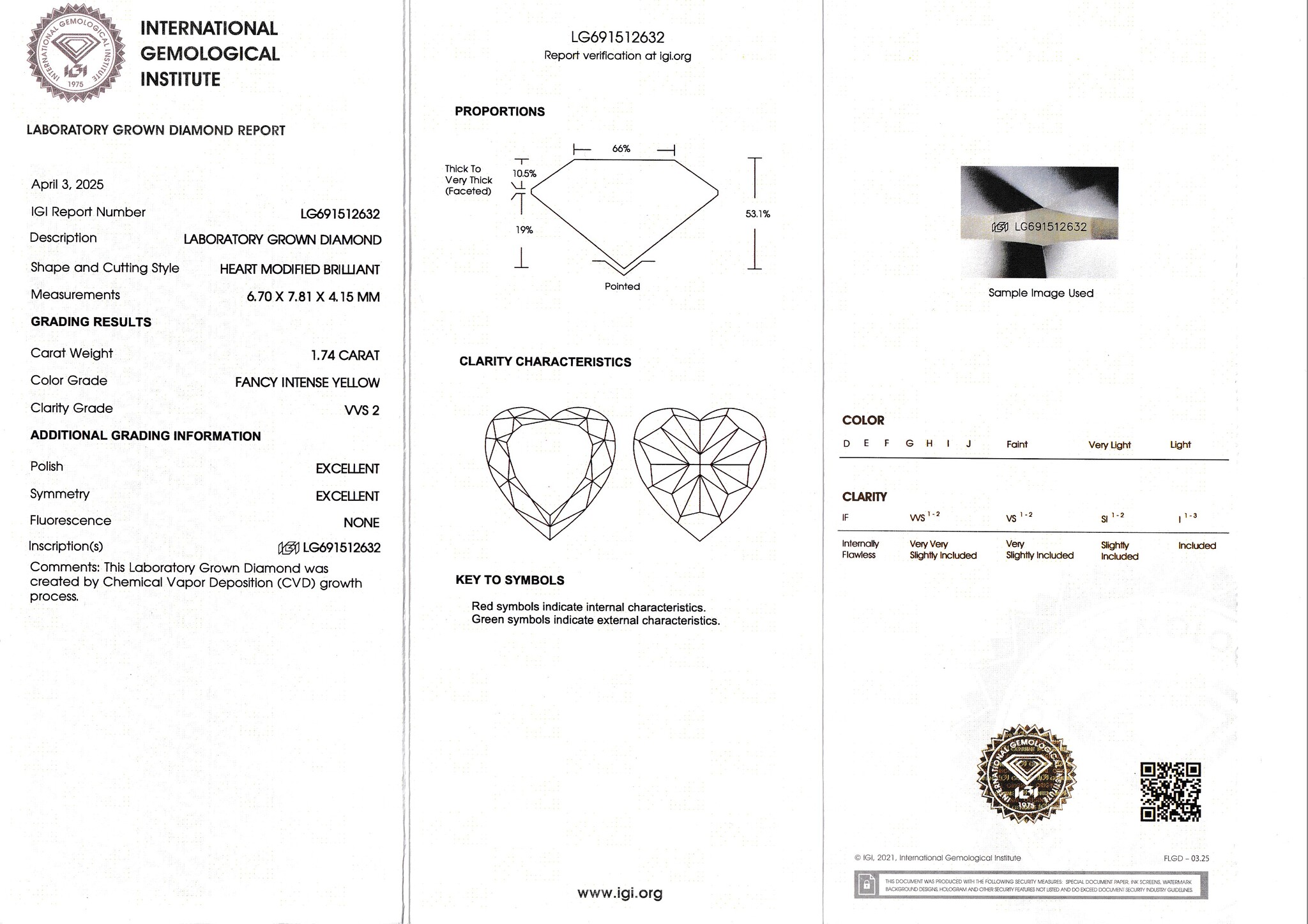 Лабораторно-выращенный бриллиант огранки "Сердце" Fancy Intense Yellow/VVS2 массой 1.74 ct