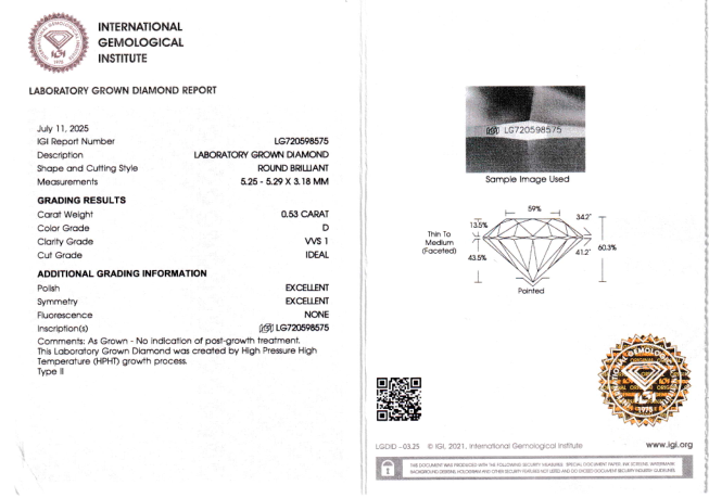 Лабораторно-выращенный бриллиант Кр-57 5.25-5.29 мм D/VVS1 0.53 ct
