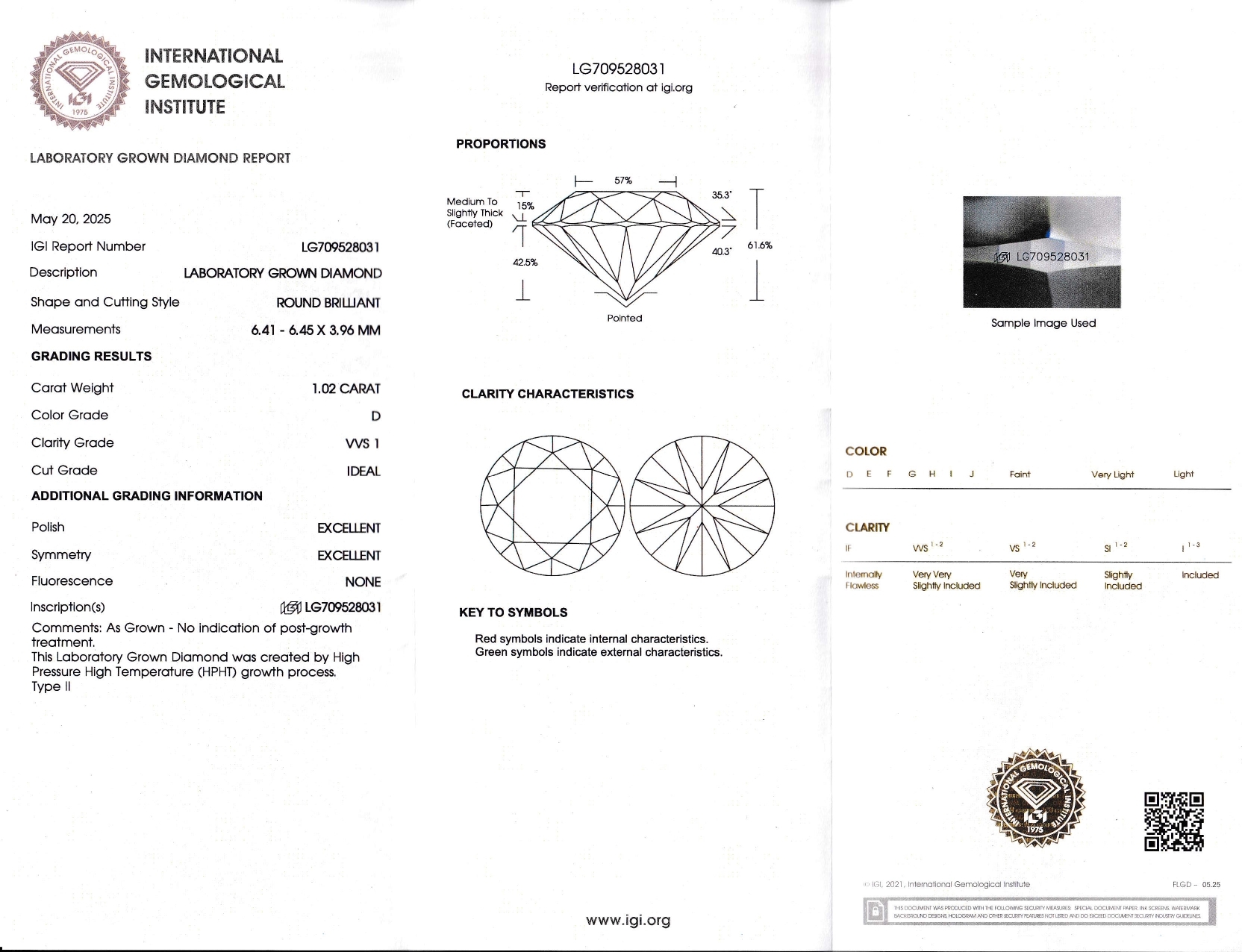 Лабораторно-выращенный бриллиант Кр-57 6.41-6.45 мм D/VVS1 1.02ct