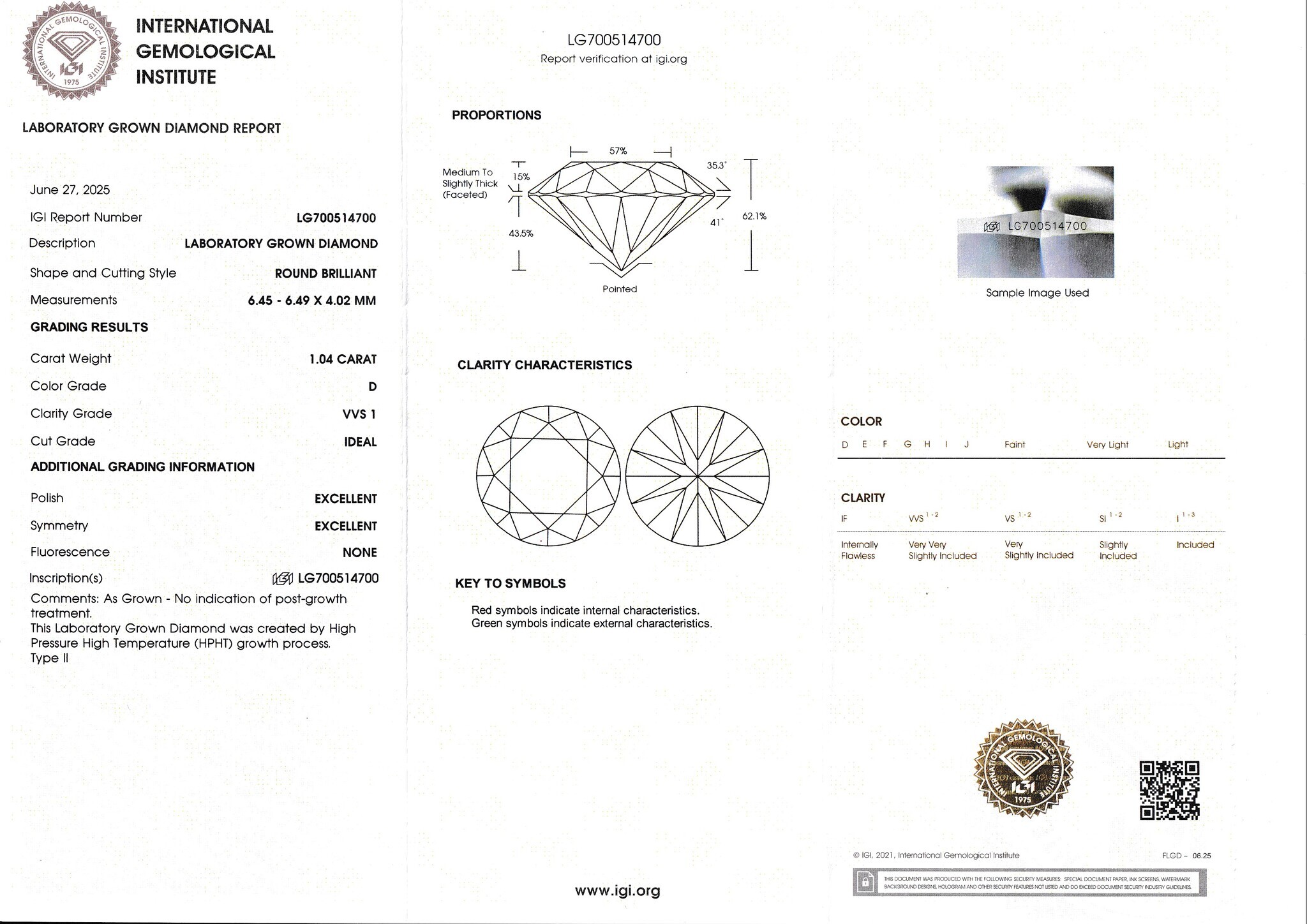 Лабораторно-выращенный бриллиант Кр-57 6.45-6.49 мм D/VVS1 1.04 ct