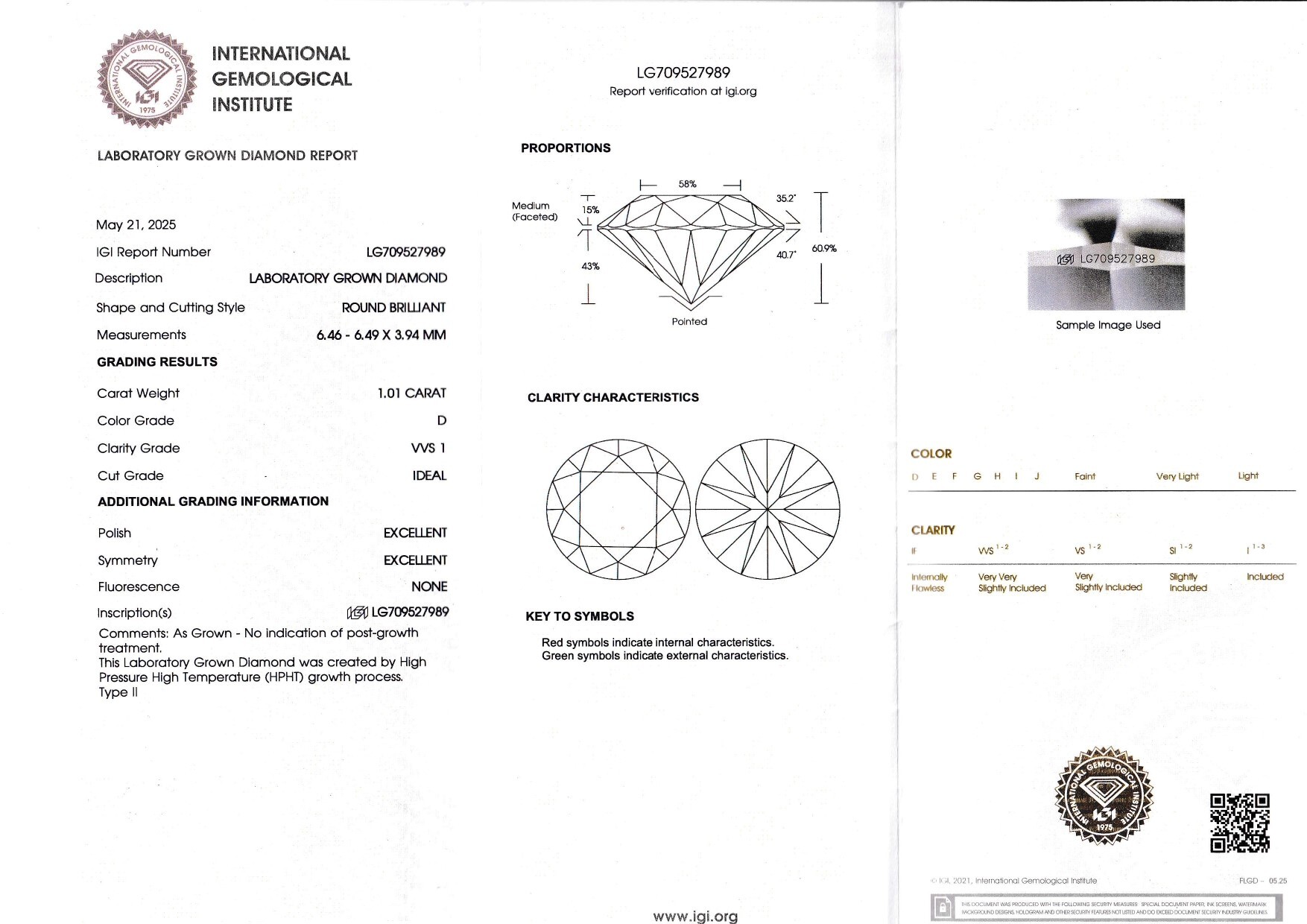 Лабораторно-выращенный бриллиант Кр-57 6.46-6.49 мм D/VVS1 1.01ct