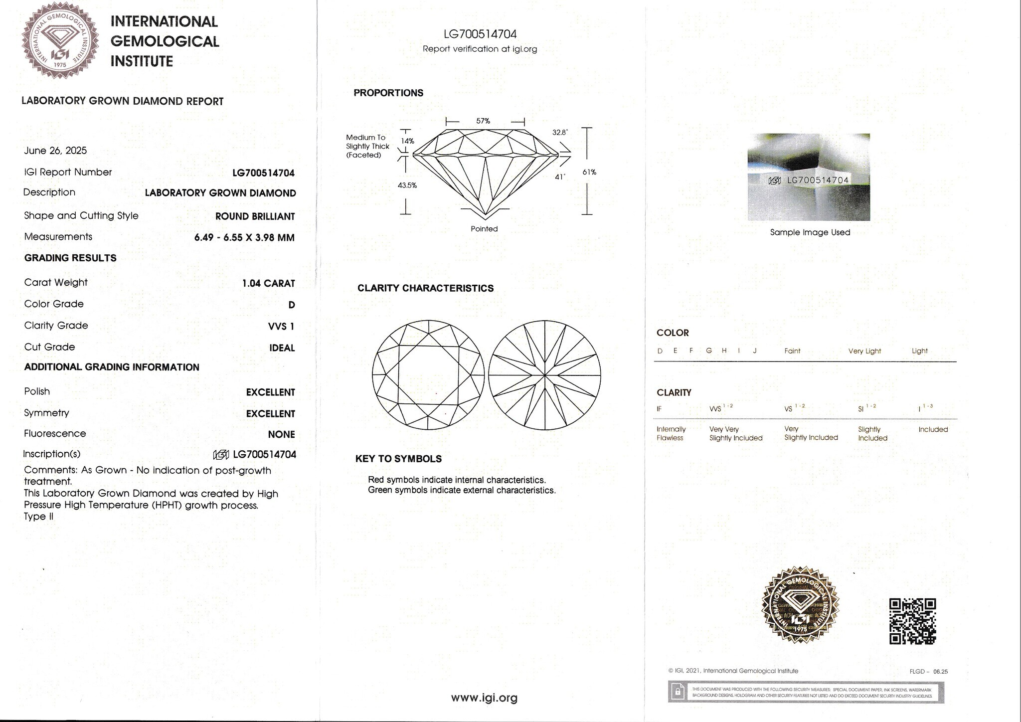 Лабораторно-выращенный бриллиант Кр-57 6.49-6.55 мм D/VVS1 1.04 ct