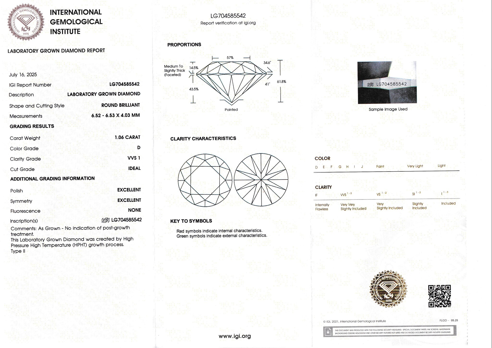 Лабораторно-выращенный бриллиант Кр-57 6.52-6.53 мм D/VVS1 1.06 ct