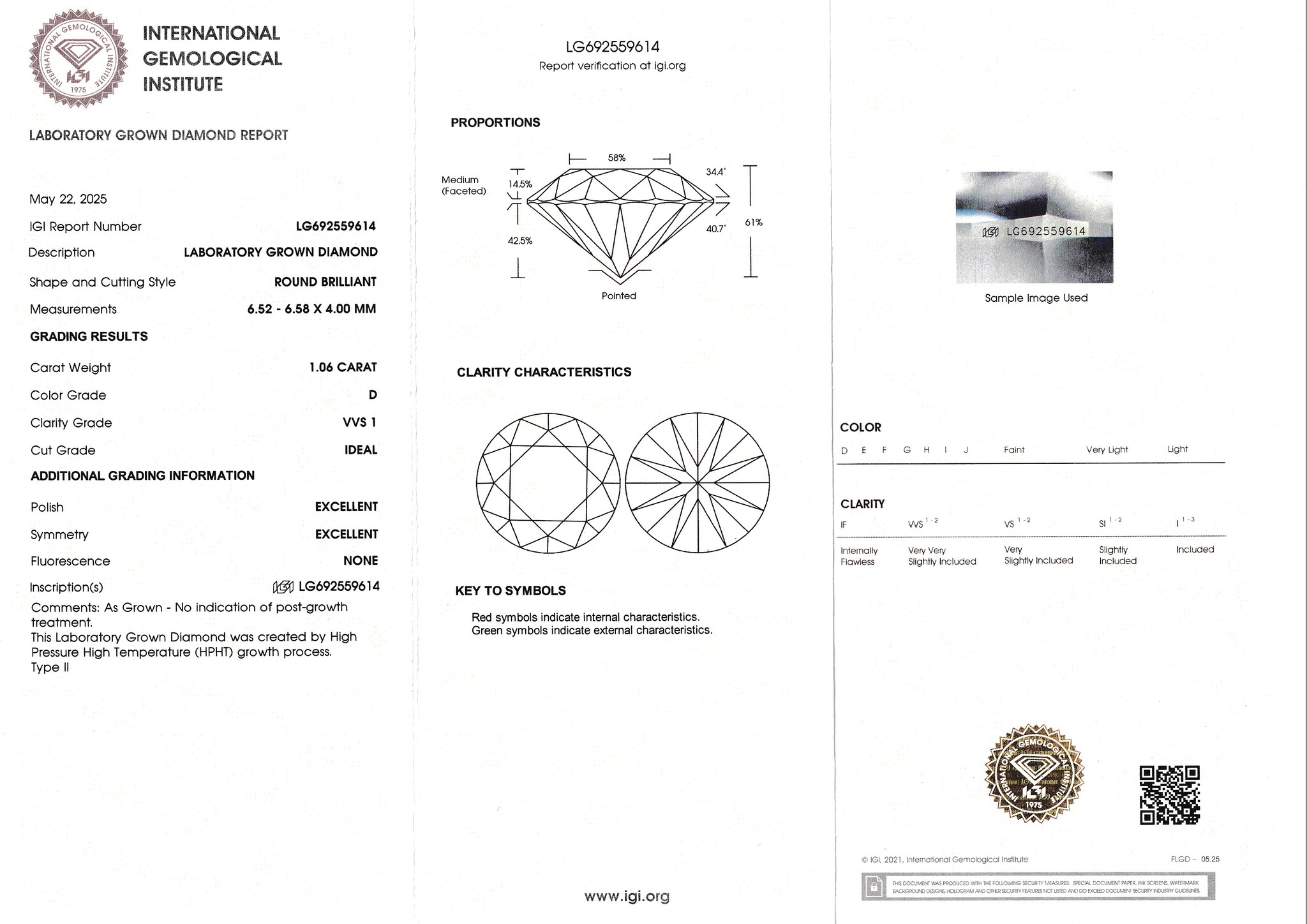Лабораторно-выращенный бриллиант Кр-57 6.52-6.58 мм D/VVS1 1.06 ct