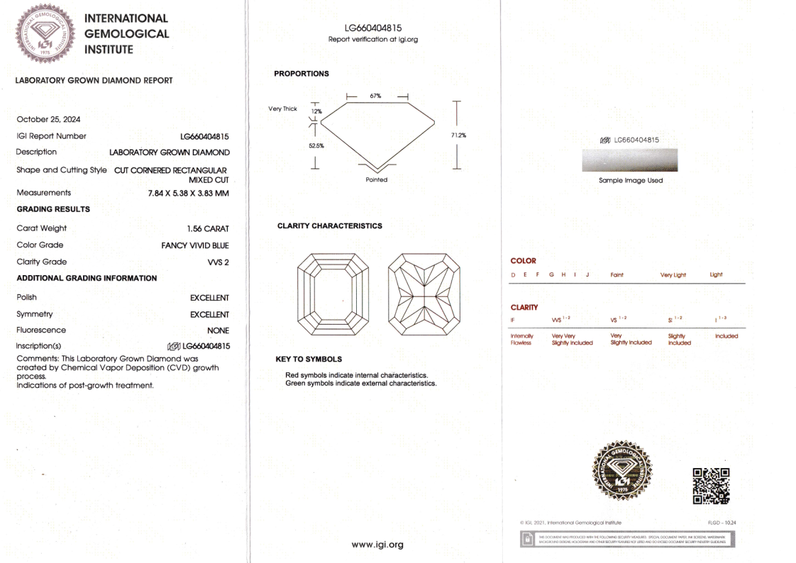 Лабораторно-выращенный бриллиант радиант 7.84 х 5.38 х 3.83 мм FancyVIVID BLUE/VVS2 1.56 ct