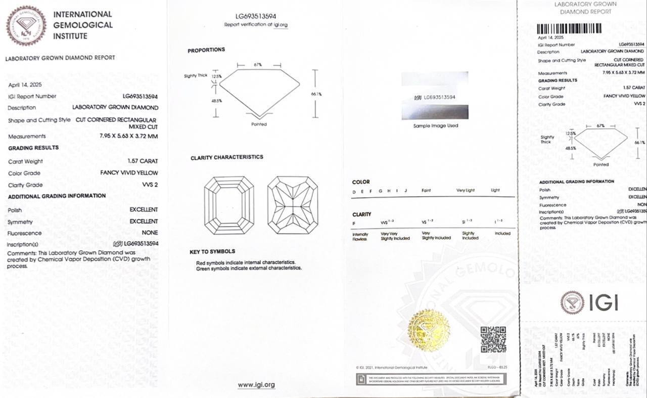 Лабораторно-выращенный бриллиант радиант 7.95 х 5.63 х 3.72 мм 1.57 ct