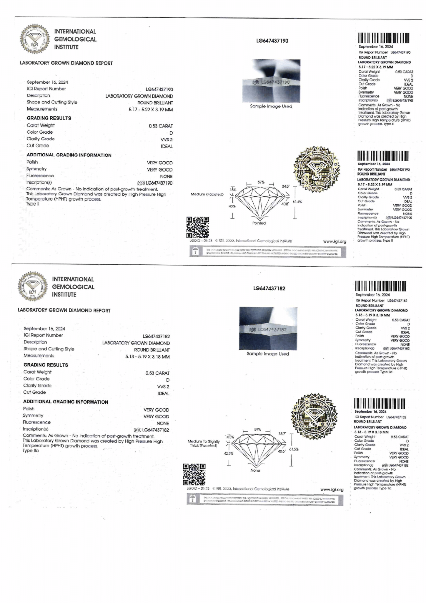 Лабораторно-выращенный бриллиант D/VVS2 массой 0.53 ct